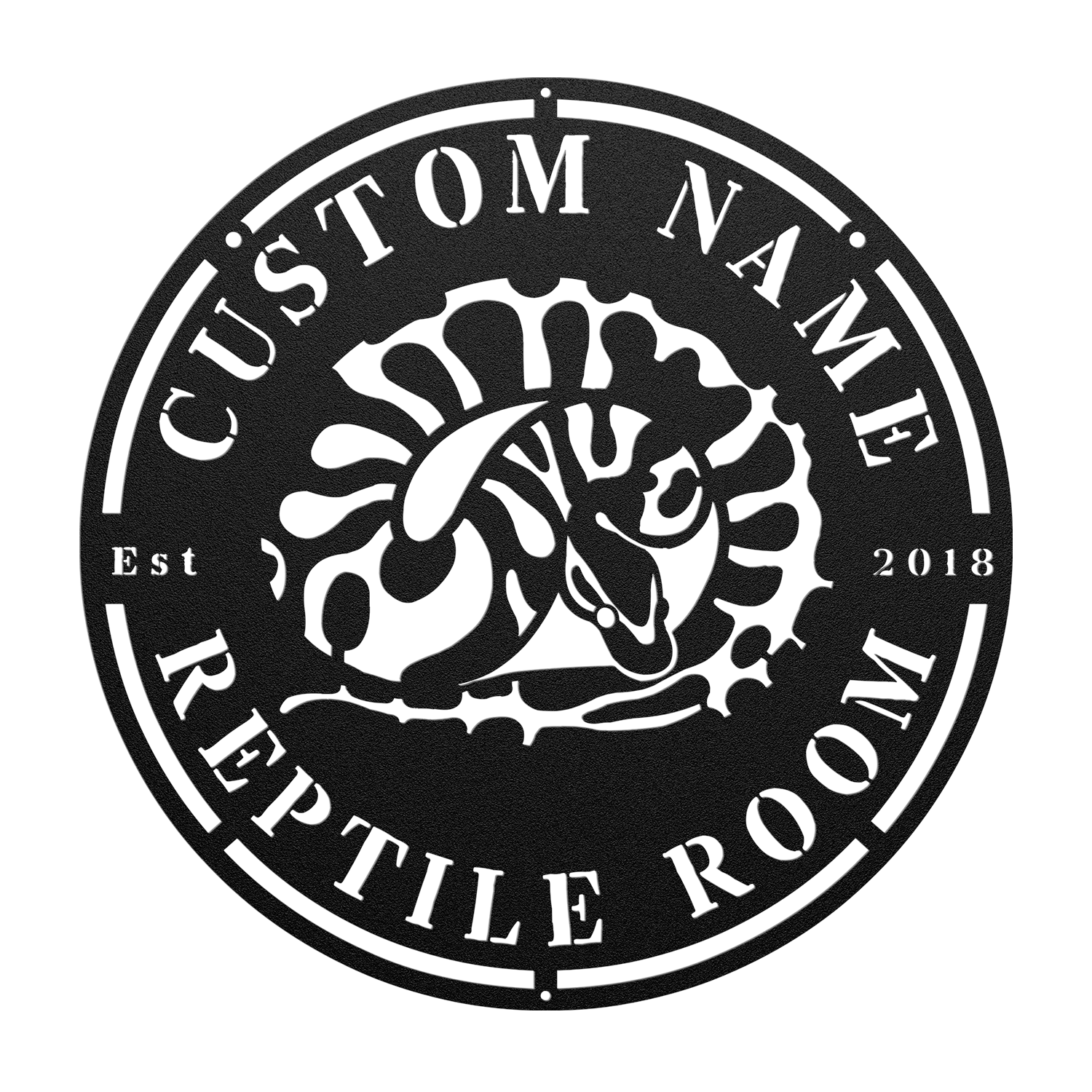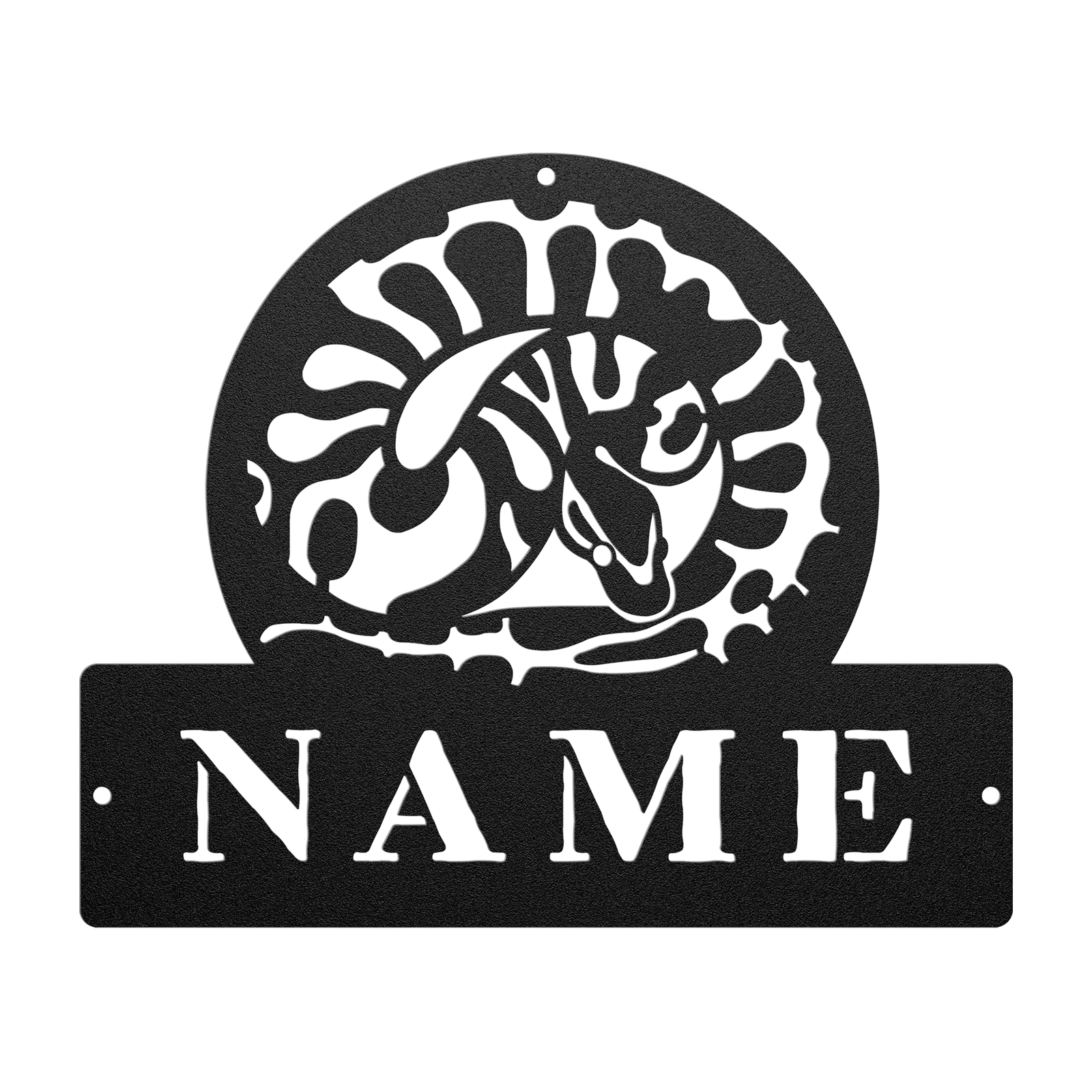 Crafted with precision, this durable metal sign is the perfect way to decorate your reptile room! Make it yours by picking out your favorite color and personalizing it with a custom name.